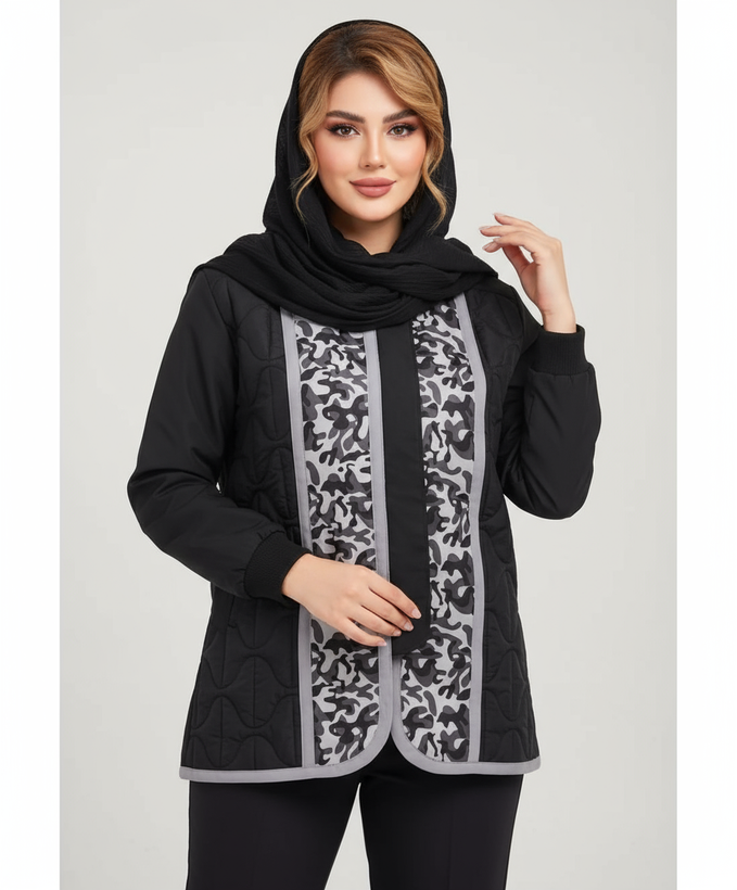 کت مشکی مجلسی طرح گل لیزری مشکی