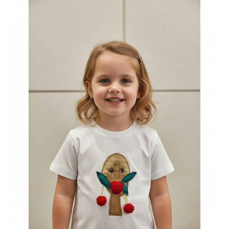 تیشرت سفید کودکانه با استیکرهای دست دوز پارچه ای طرح چری
