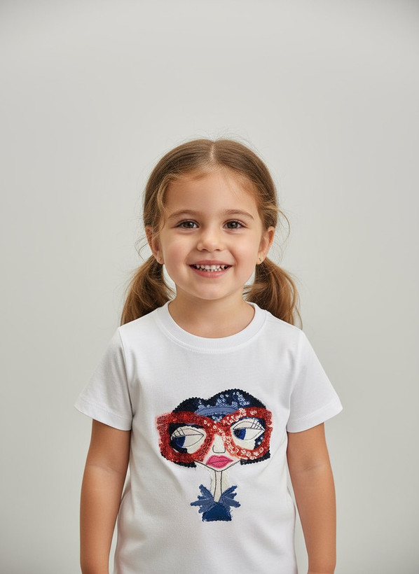 تیشرت سفید کودکانه با استیکرهای دست دوز پارچه ای طرح لونِت