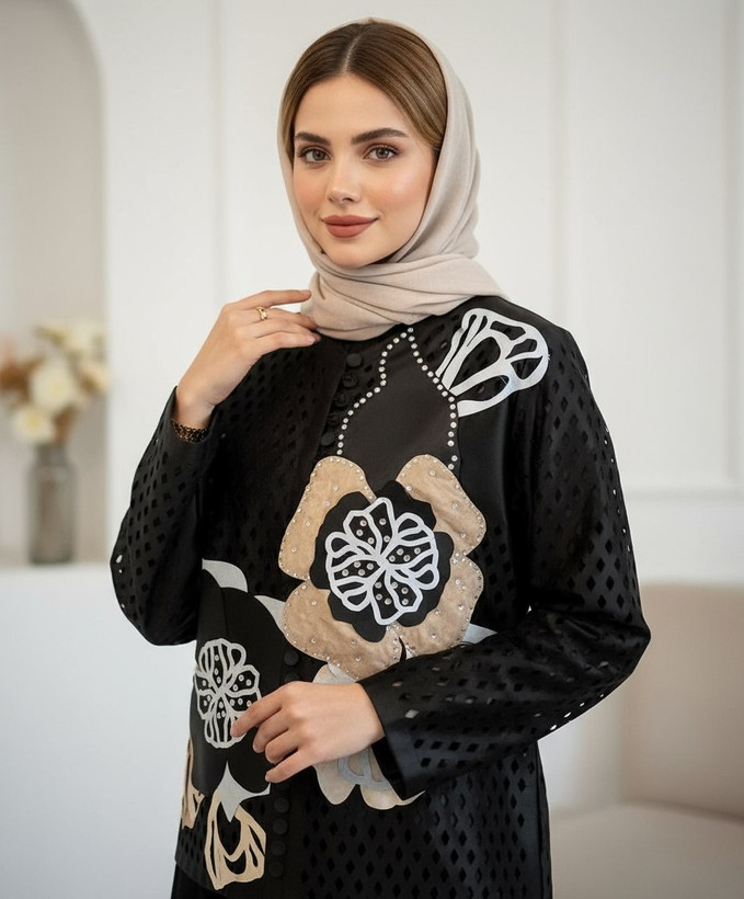 شومیز مجلسی زنانه تنه لیزر لوزی طرح گل نگین دوزی