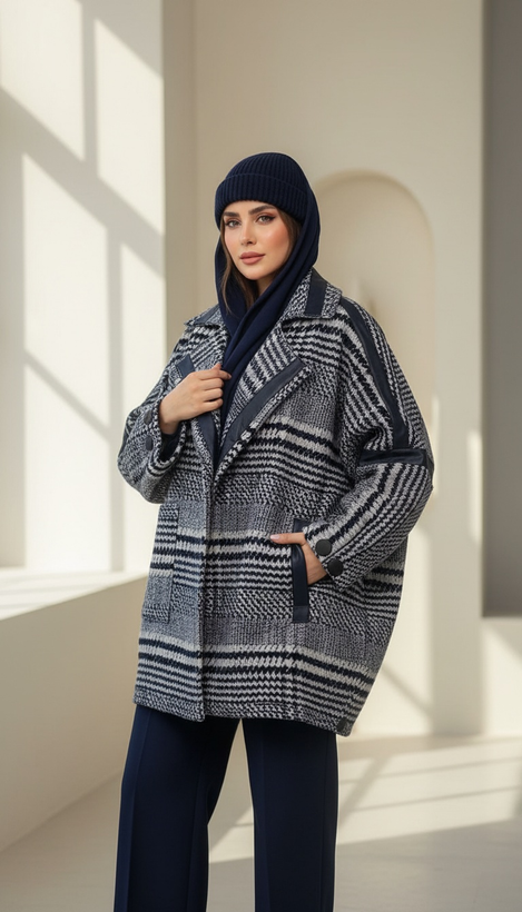 پالتو پشمی آستردار طرح پیر دو پل