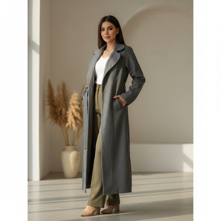 پالتو بلند فوتر پشمی آستردار طرح کلاسیک
