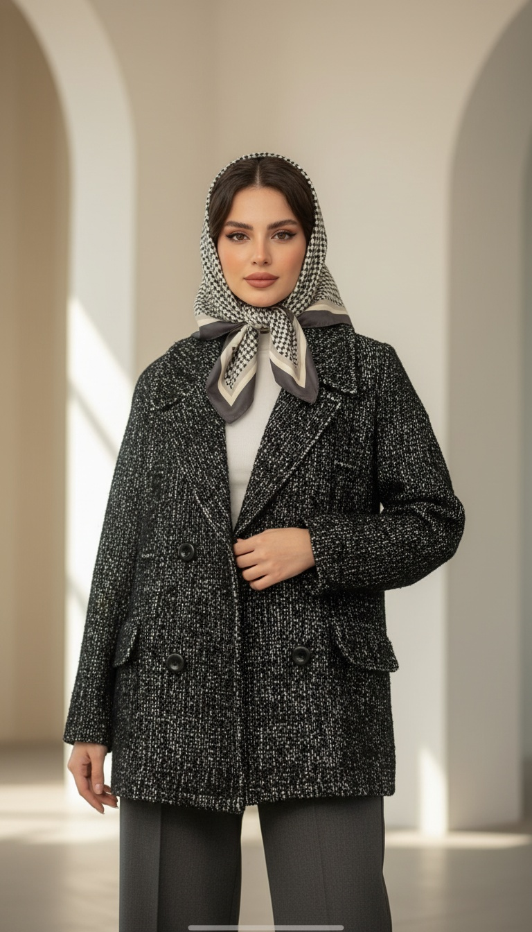 کت پشمی آستر دار زنانه طرح پیر دو پل