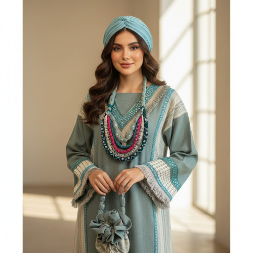 کفتان نخی طرح سنتی با کیف و گردنبند تزئینی