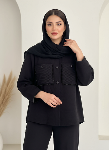 ناموجودکراپ کت مشکی طرح گل رنگی سوزن دوزی