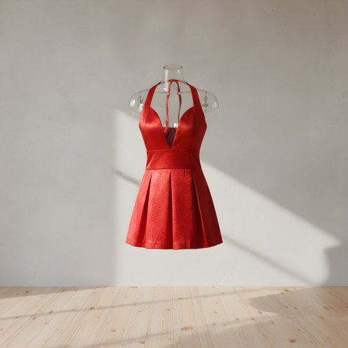 پیراهن قرمز کوتاه مجلسی طرح پلیسه