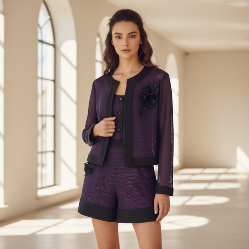 ست کت و شلوارک مجلسی زنانه طرح تور و گل