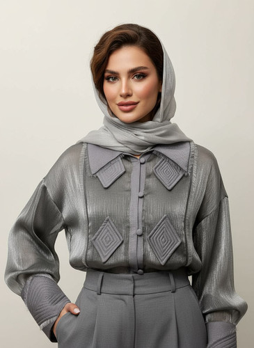 شومیزتور مجلسی زنانه نقره ای طرح لوزی